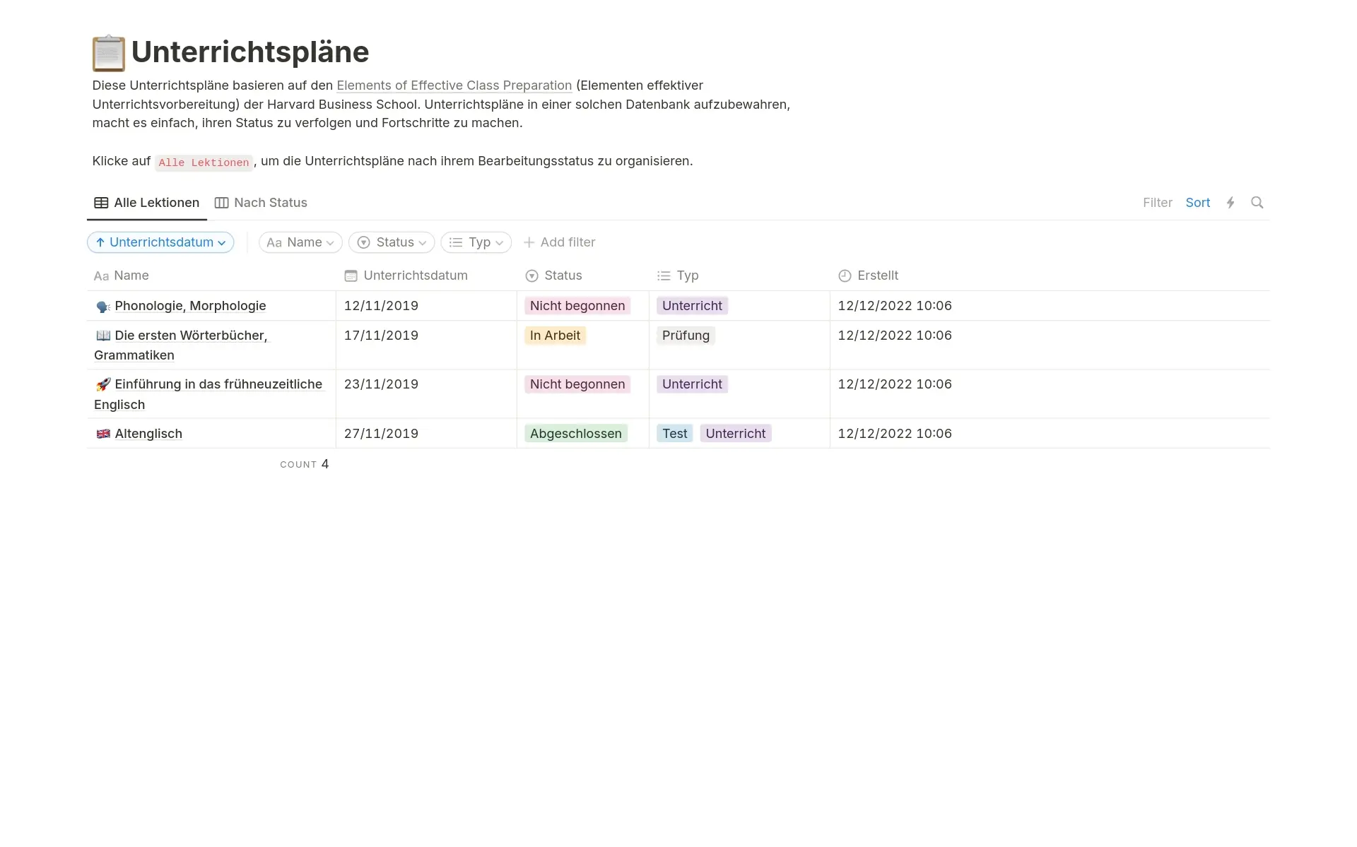 Unterrichtsnotizen
